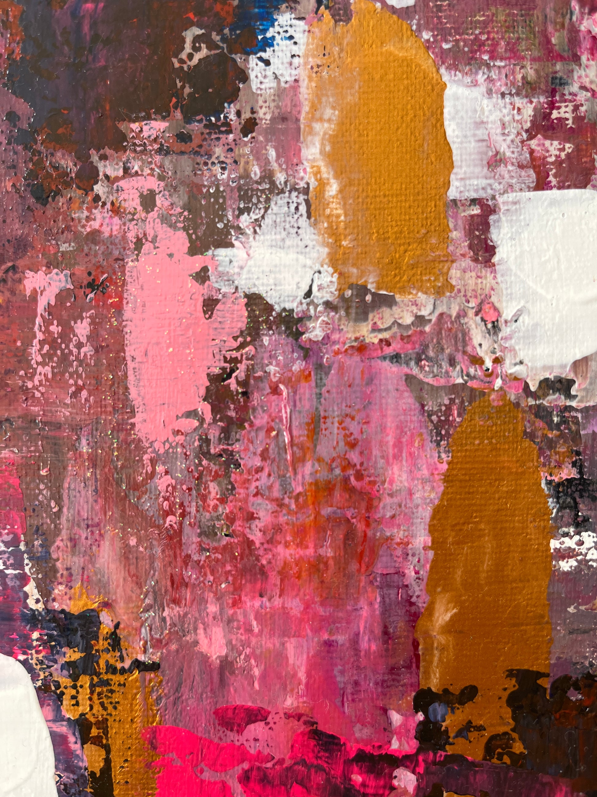 深みのあるピンクの抽象画 0号アクリル画 「桜紅」 | Abstract Acrylic Painting Pink "Sakurabeni"