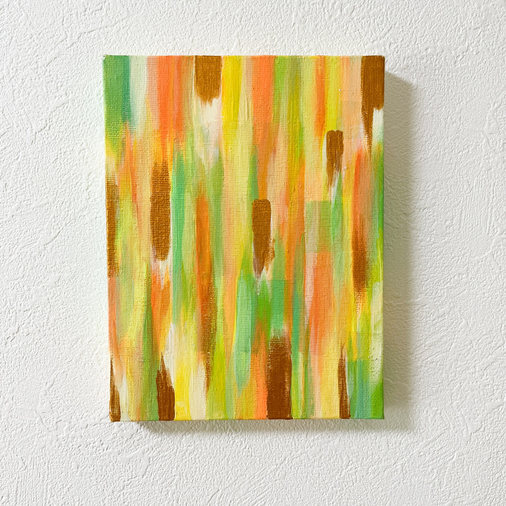 A small, colorful abstract painting that brightens your mood just by looking at it.