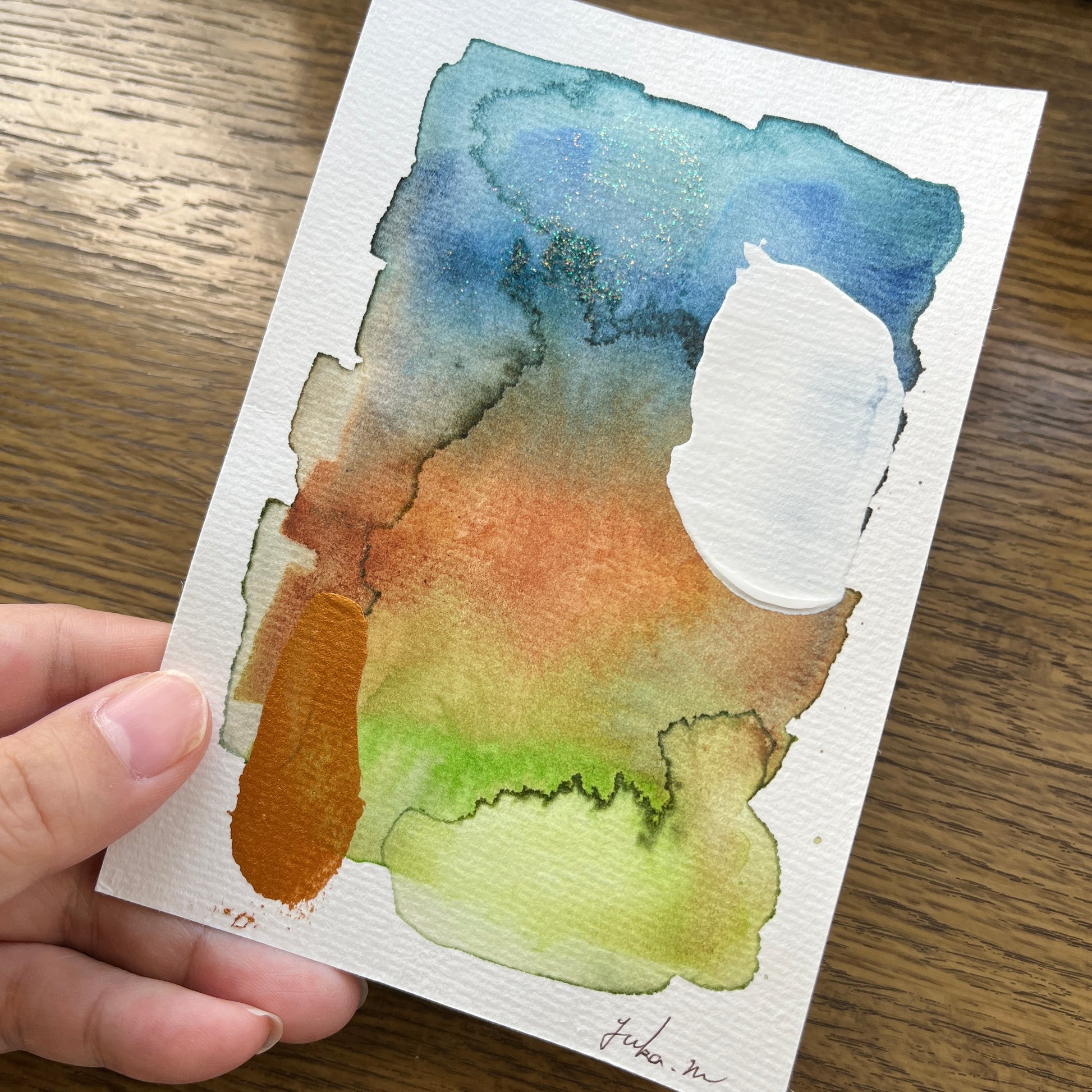 ハガキサイズ水彩抽象画(4種類から選択可)