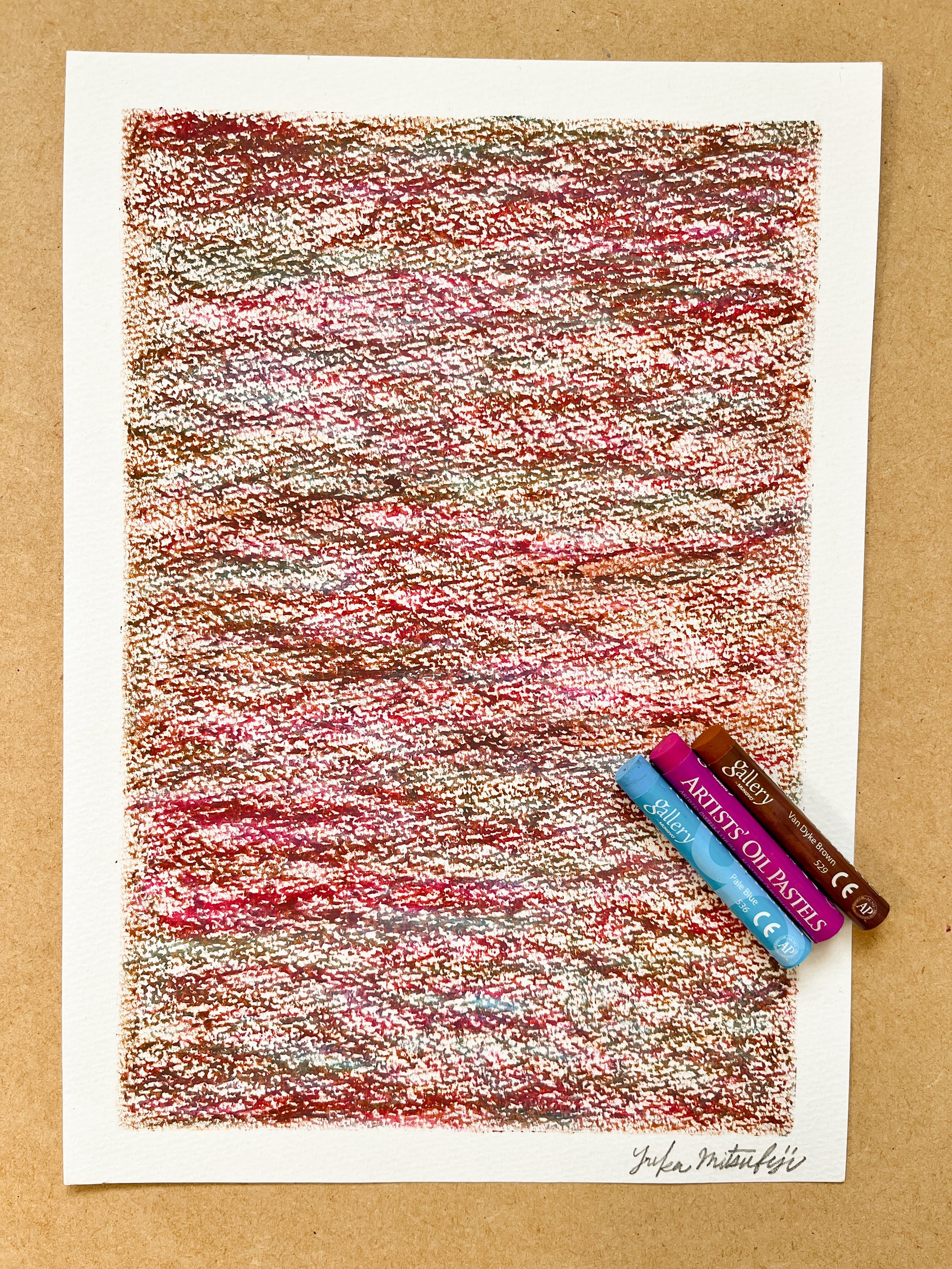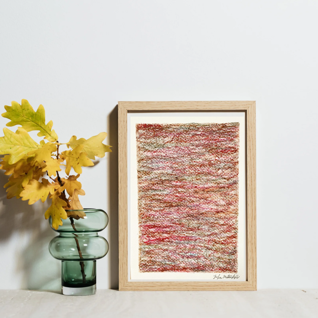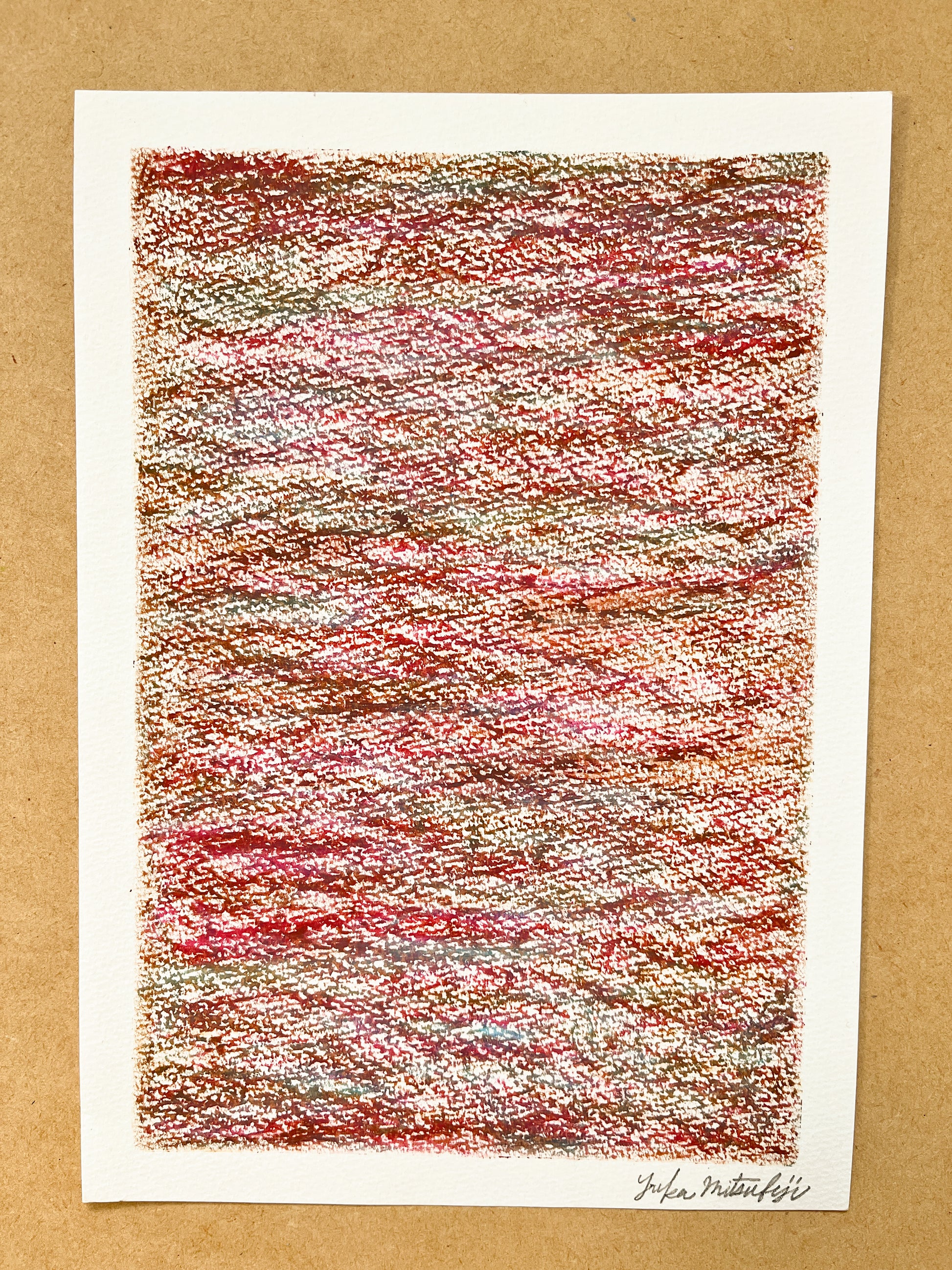 「メランジの世界#01 紅」オイルパステル 抽象画 B5サイズ