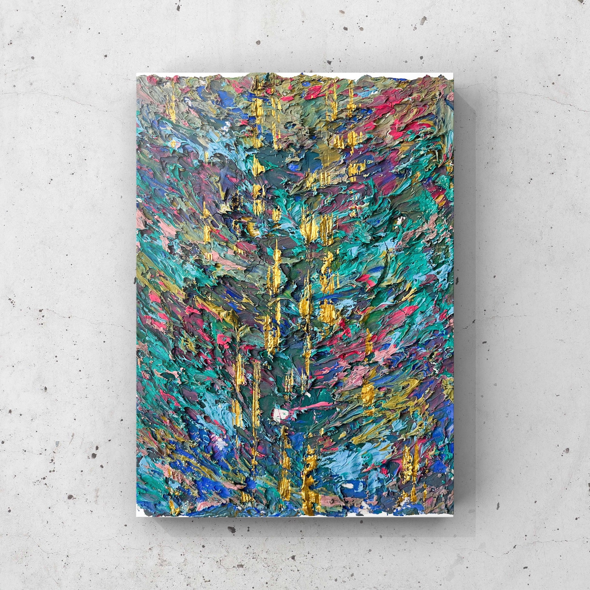 Materials:Modeling Paste, Acrylic paint, gel medium, varnish