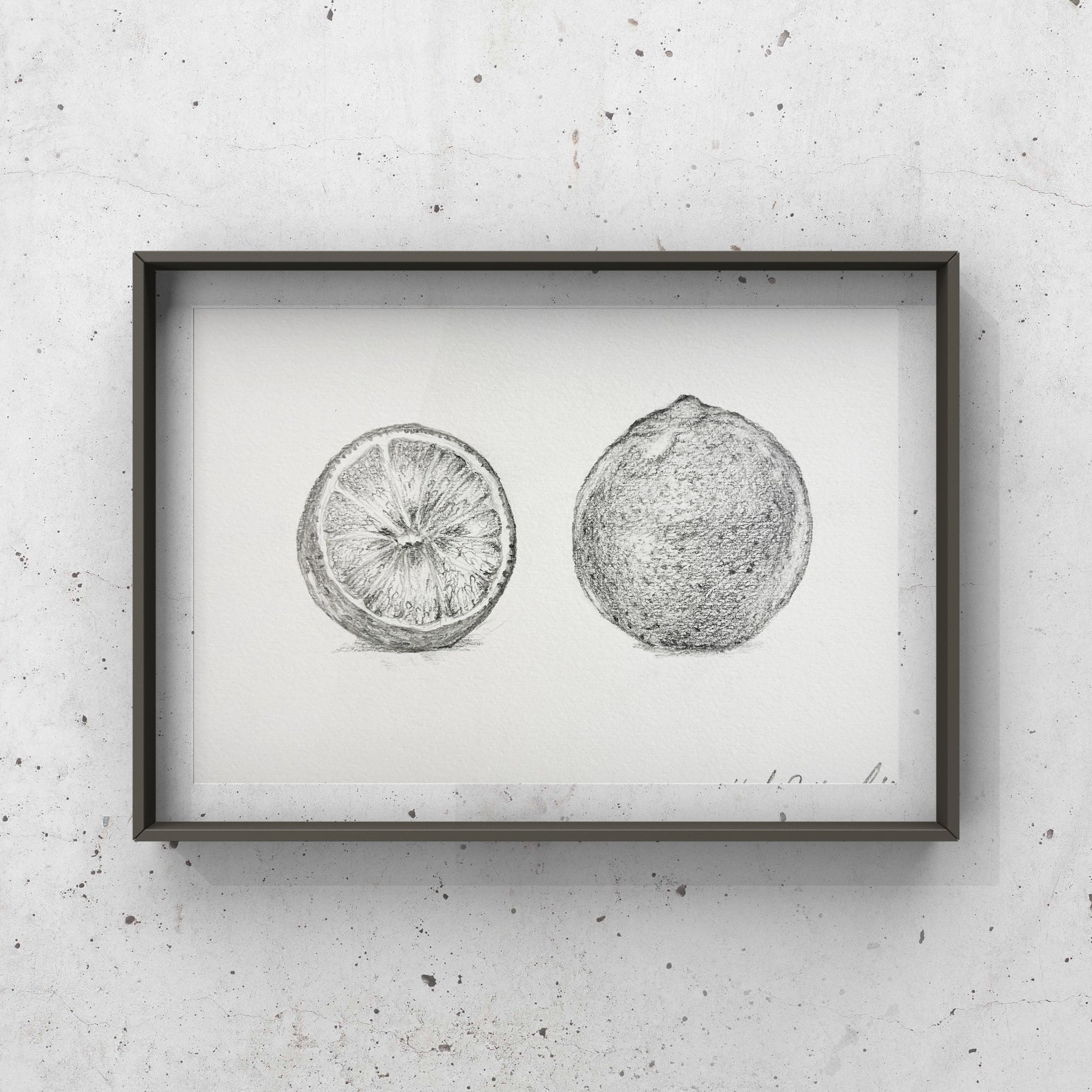 用鉛筆在SM尺寸高品質水彩紙上繪製的逼真「葡萄柚」素描